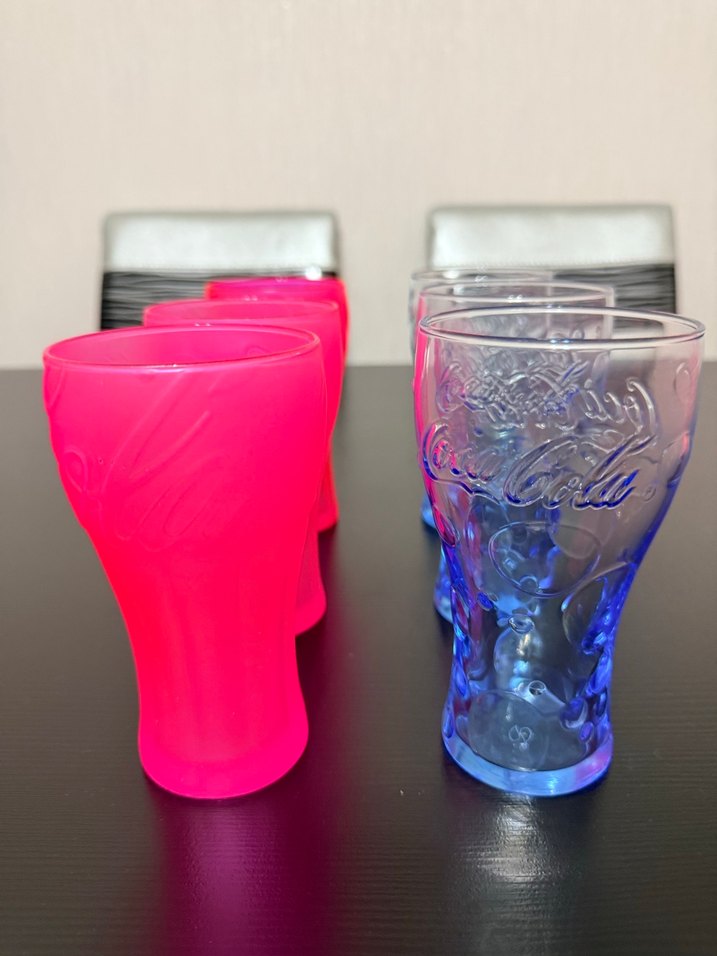 Renkli Pembe ve Mavi Coca-Cola Bardak Seti