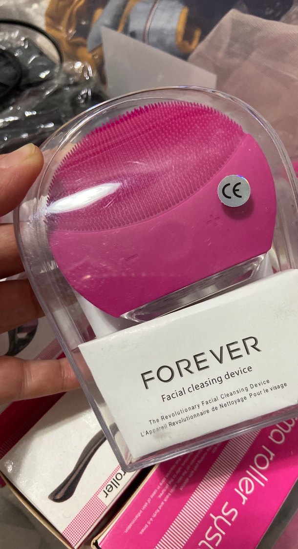 FOREVER markalı, renkli pembe yüz temizleme cihazı, yumuşak silikon kıllarla nazikçe cildi derinlemesine temizler.
