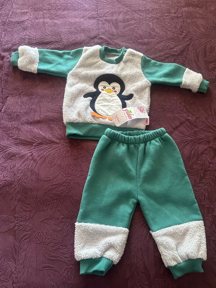 Renkli Penguen Desenli Bebek Erkek Takımı