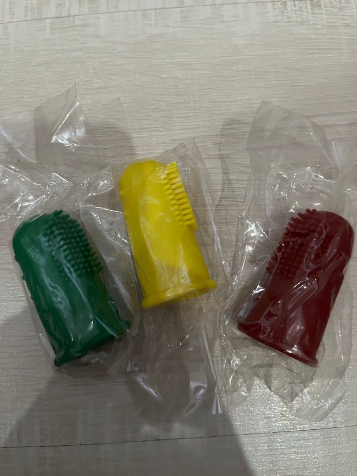 Yeşil, sarı ve kırmızı renklerde pet diş fırçaları, evcil hayvanınızın dişlerini temizlemeye yardımcı olur.