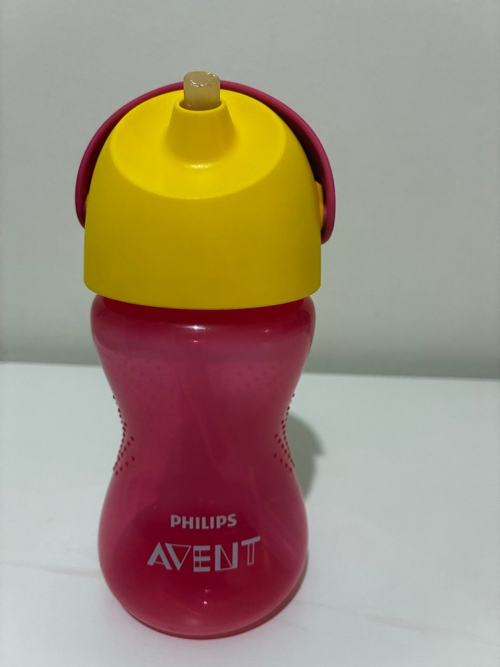Renkli Philips Avent bebek biberonu, pembe gövde ve sarı kapaklı, yumuşak emzikli kolay içim sağlar. Pipet kısmı çok az kısaltmak durumunda kaldığımız için fiyat makul tutulmuştur.