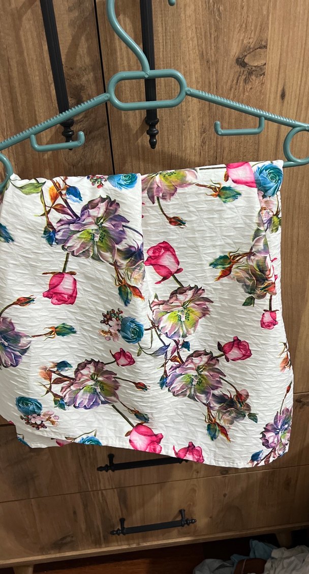 Yumuşak sentetik kumaştan, renkli çiçek desenli pileli kadın etek Bohem tarzını yansıtır.