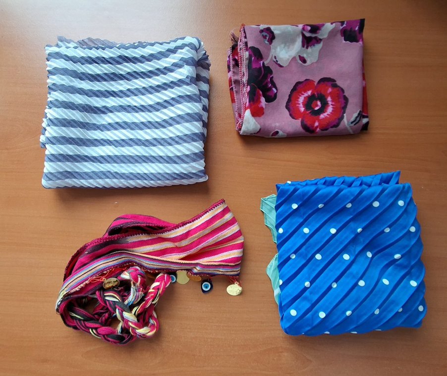 Tekstilden yapılmış, çeşitli desenlere sahip renkli pileli kadın fularları. Bohem tarzına uygundur. iade kabulu yoktur. ciddi alıcılar iletişime geçsin