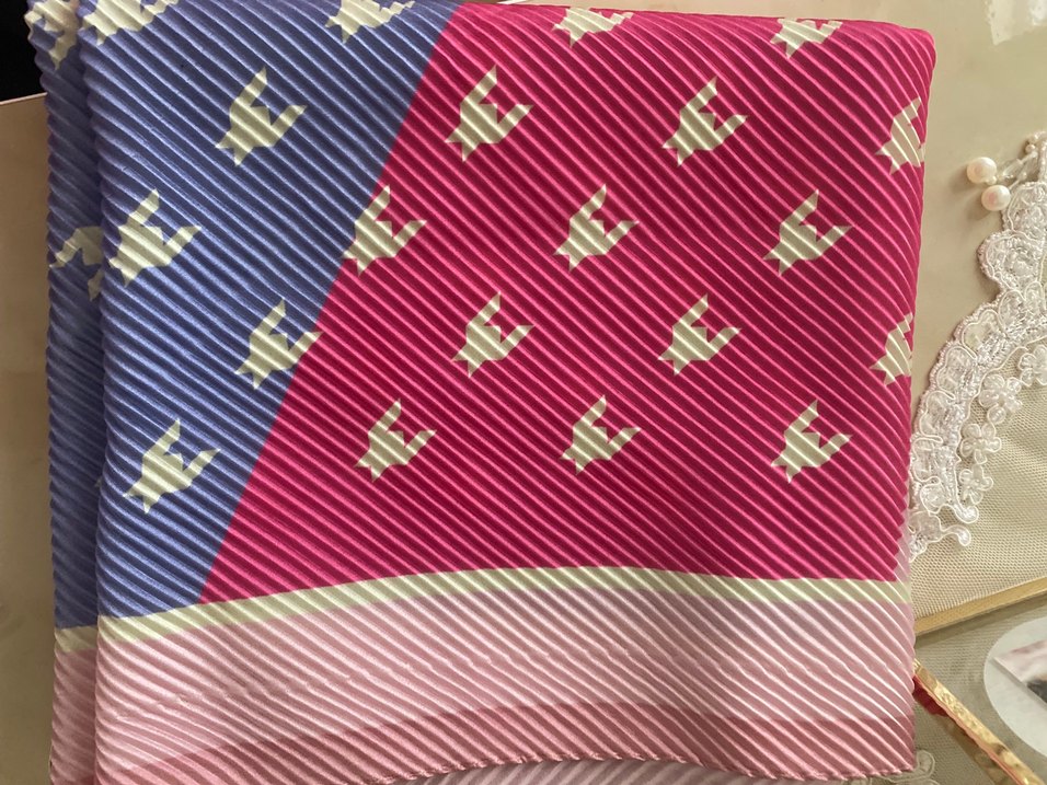 Kadın fuları, pilili sentetik kumaştan yapılmıştır ve renkli pop kültür ile Paris bohem tarzından esinlenmiştir.