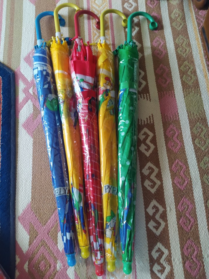 Canlı renklerde, pilili ve retro-bohem tarzda kadın şemsiyeleri, çok renkli desenlerle. istiyen ilan açtirabilir