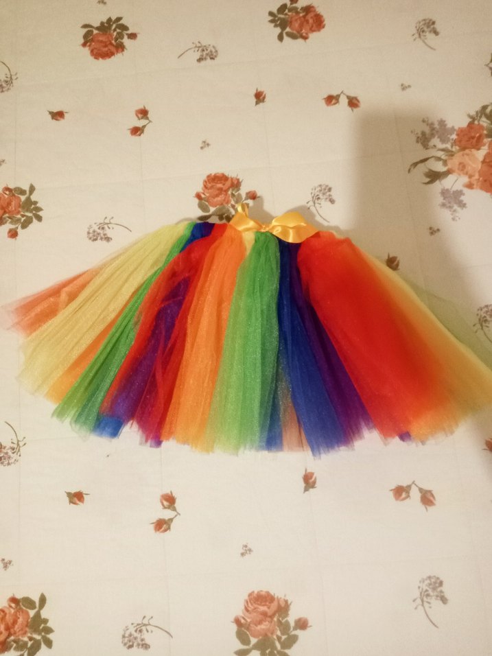 Renkli pilili tasarıma sahip, bol kesim kız çocuk eteği, yumuşak sentetik kumaştan ve batik desenlidir.