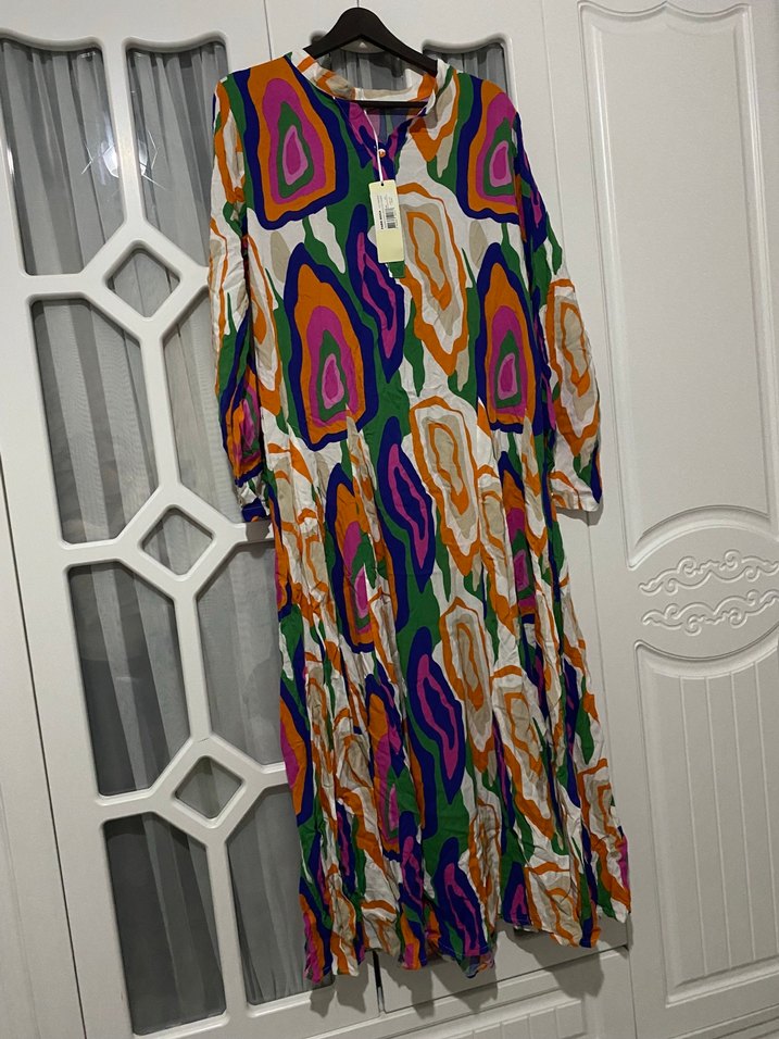 Renkli Piliseli Bohem Uzun Elbise