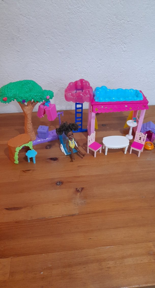 Renkli pembe oyuncak seti, ağaç, mobilyalar ve bebek içerir, hayal gücünü destekler. orjinal chelsea oyuncaklaridir fiyata hepsi dahildir