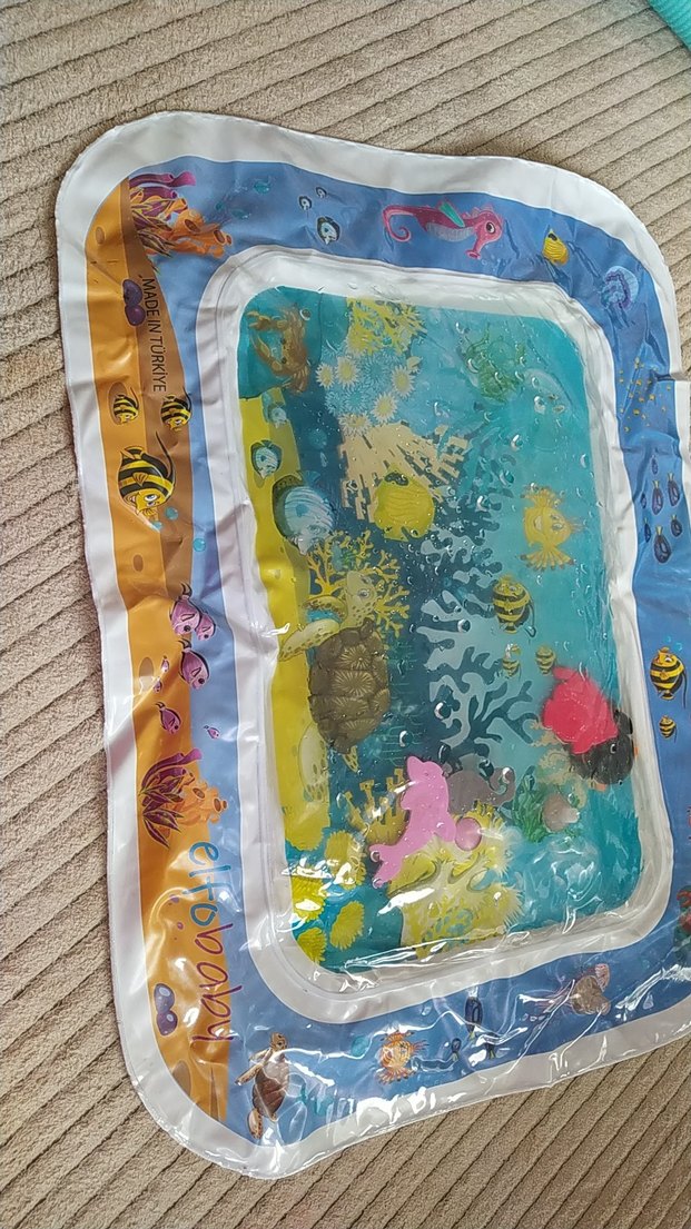 Plastik yüzeyli, su altı temalı renkli bebek oyun matı. Yürümeye başlayan çocuklar için uygun, canlı ve eğlenceli bir oyun alanı sağlar.