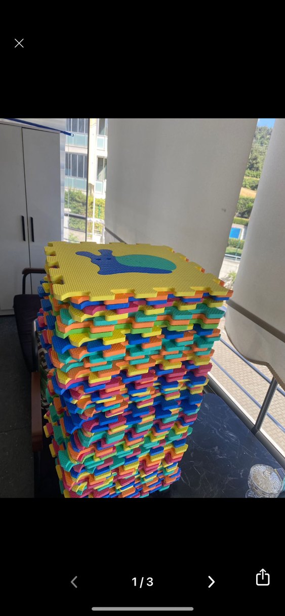 43 adet. Hepsi tam. Çocuklar için yumuşak ve güvenli oyun alanı oluşturabilen renkli plastik bebek oyun matı parçaları.