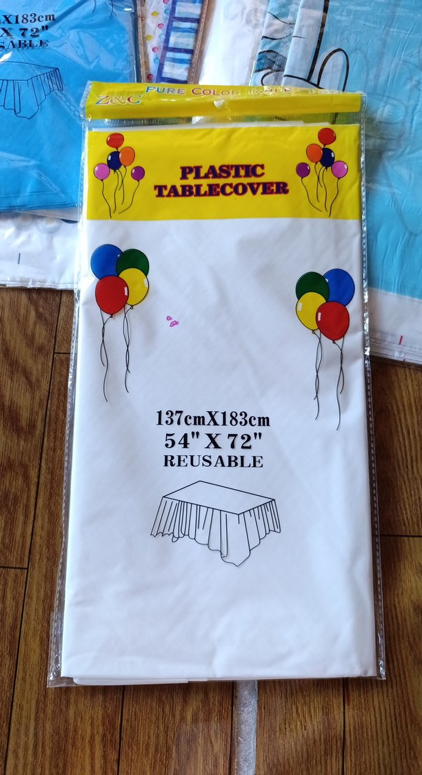 137x183 cm ölçülerinde renkli, tekrar kullanılabilir plastik masa örtüsü. Parti ve etkinlikler için uygundur. Beyaz renktir..