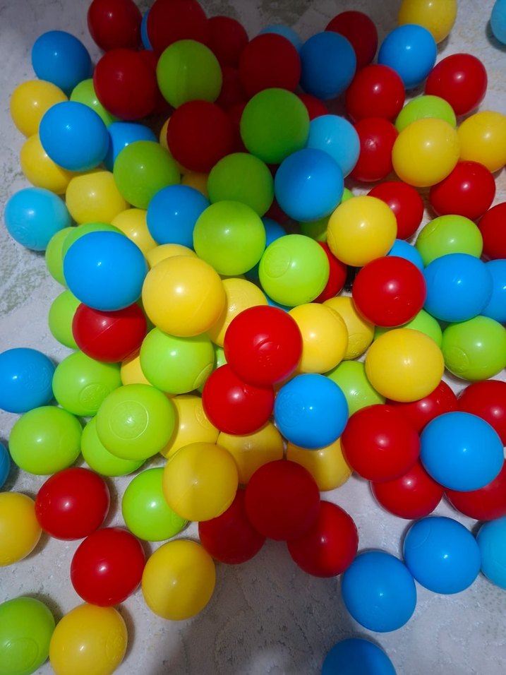 Kırmızı, sarı, yeşil ve mavi renklerde plastik oyun topları. Top havuzları veya oyunlar için uygun. 247 tane top vardır Ankara içi elden teslim edilir