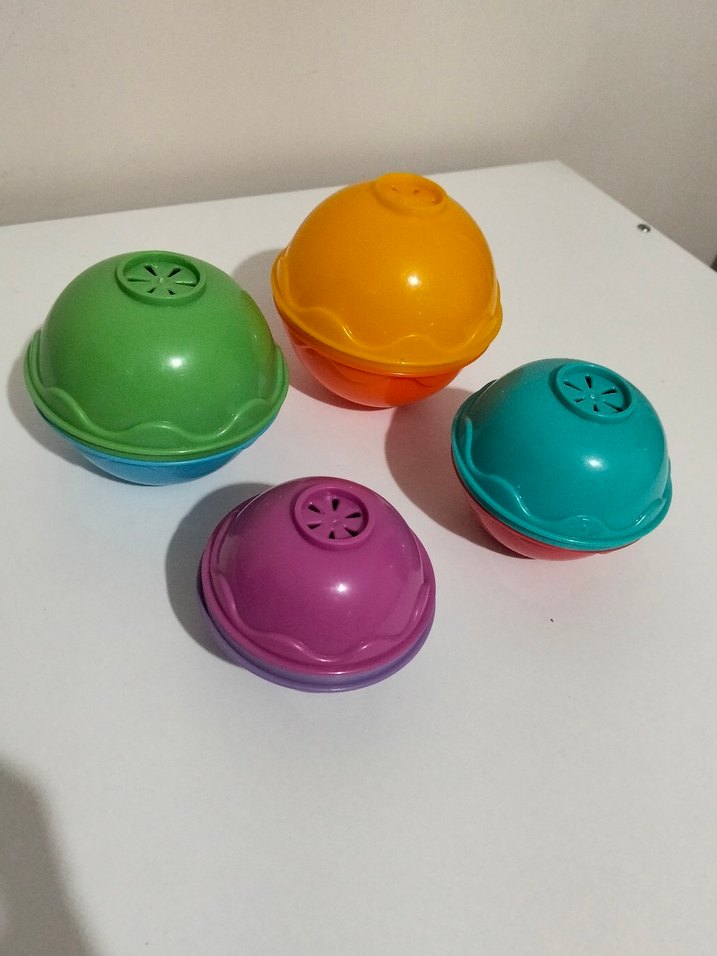 Çocuklar için renkli, havalandırmalı plastik oyun topları. Yeşil, sarı, mavi ve mor gibi canlı renklere sahiptir.