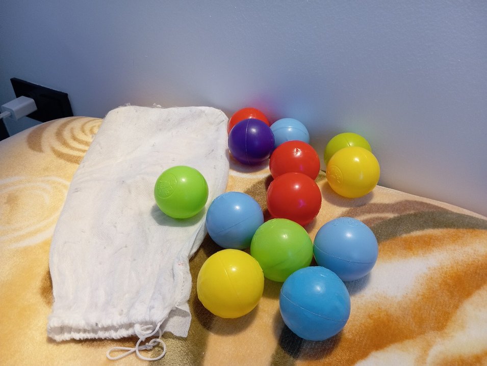 Renkli Plastik Oyun Topları ve Kumaş Torba