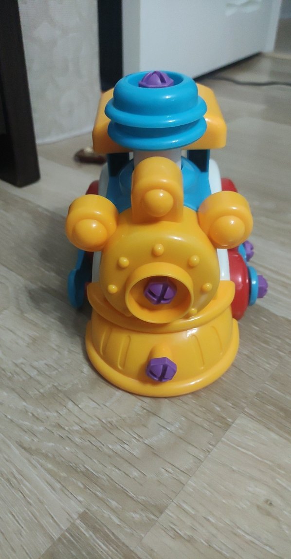 Çok renkli plastik oyuncak tren, çeşitli canlı parçalara sahip, oyun için uygun. Zeka Geliştirici Tek Bir Lastiği Eksik