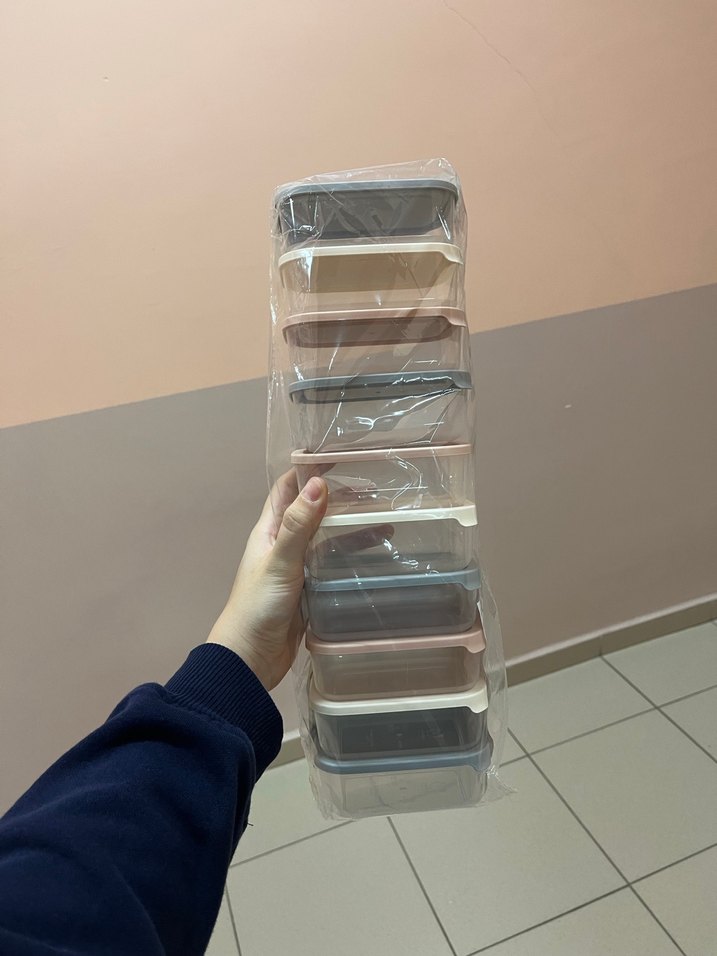Mutfakta kullanıma uygun, açık tonlarda renkli plastik saklama kapları seti. 10’lu plastik set
