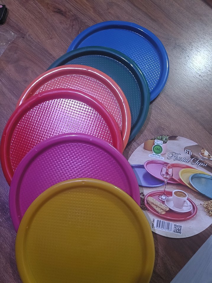 Renkli Plastik Yuvarlak Tepsiler Seti sunum tepsisi