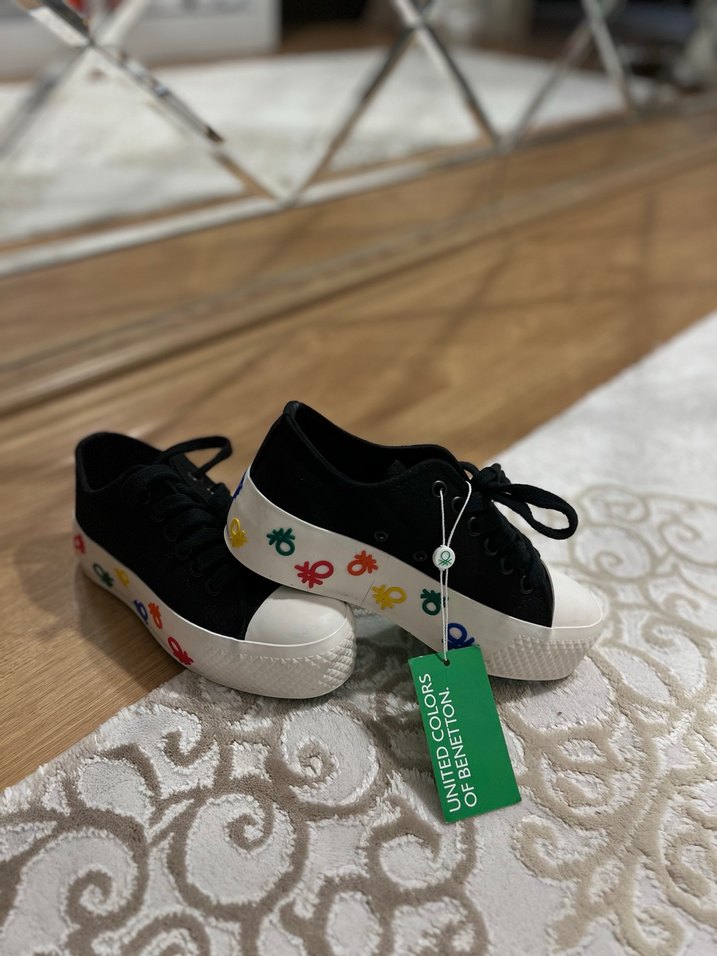Kadınlar için platform topuklu, renkli baskılı tabanlı spor ayakkabı. Cırt cırtlı ve kauçuk tabanlı, günlük ve sokak stili için uygundur. ‼️‼️‼️‼️ 1 kere giyildiiii