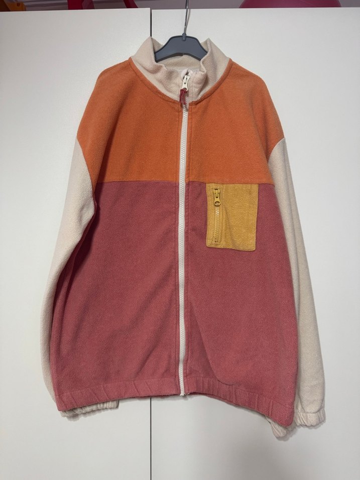Yüksek yaka, uzun kollu erkek polar. Fermuarlı ön ve cep, bol kesim, pastel çok renkli tasarım. Rahat günlük kullanım için uygun.
