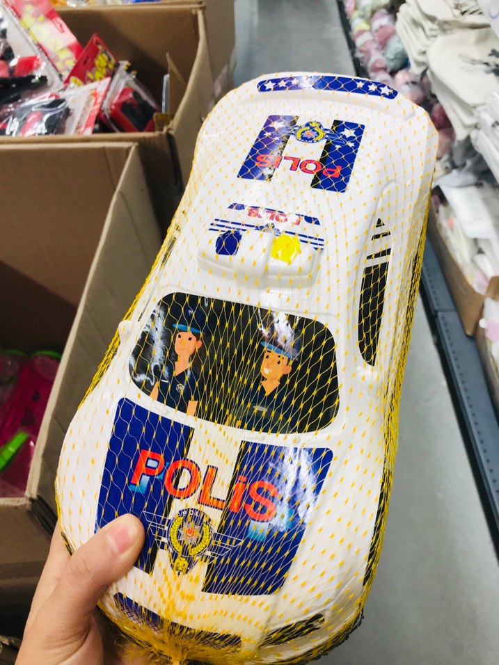 Canlı renklerde, detaylı baskılı polis oyuncak arabası, sarı file içinde paketlenmiş. İçinde 2 adet oyuncak var