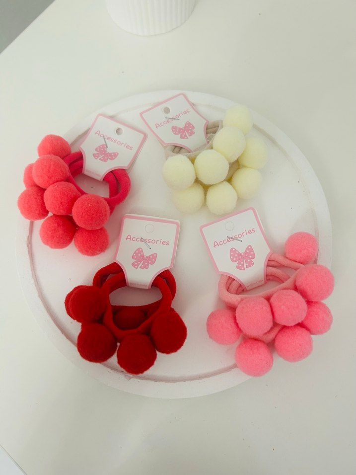 Renkli Ponponlu Lastikli Çocuk Saç Tokaları