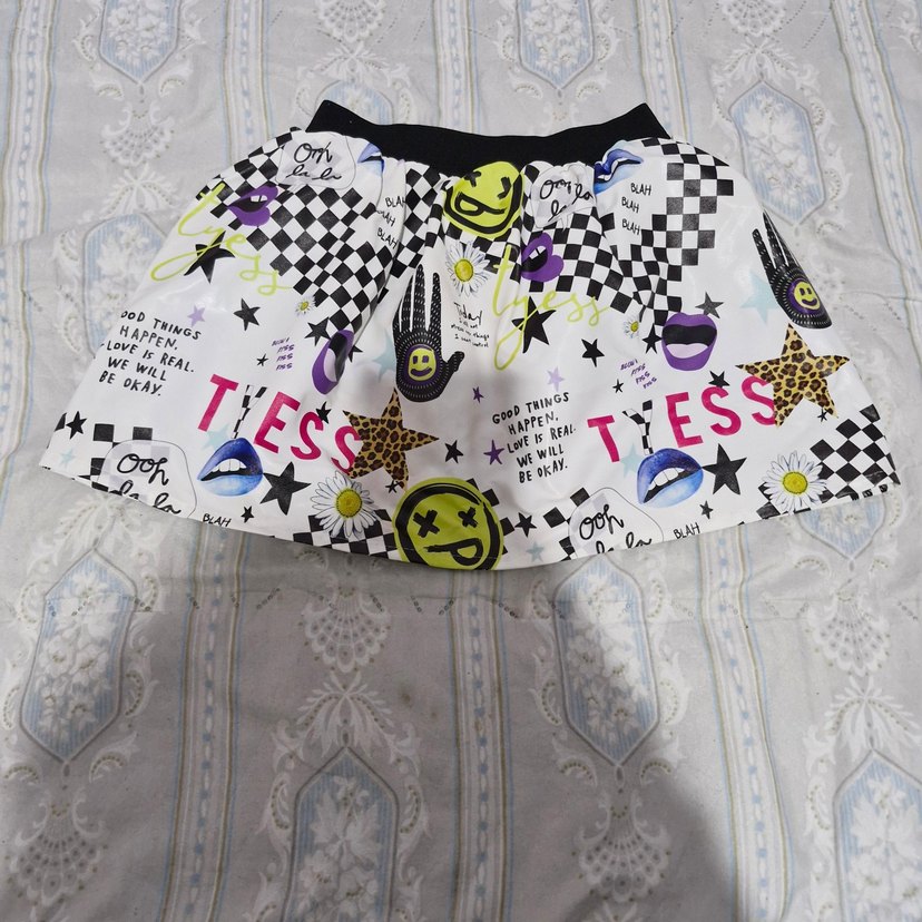 Sentetik kumaştan üretilmiş, düğmeli ve bol kesim renkli pop art desenli kız eteği. Rock punk havası taşıyan canlı desenlere sahiptir.