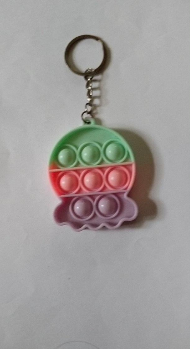 Yumuşak, renkli ve kabarcık patlatmalı tasarıma sahip taşınabilir anahtarlık oyuncak. yanında bileklik hediye