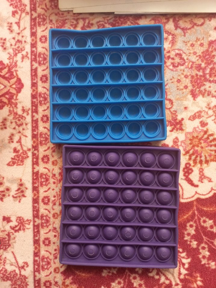 Mavi ve mor renklerde, kabarcık patlatmalı duyusal oyun seti. Dokunsal oyun ve rahatlama için uygundur. 2 tanesi 50 tl