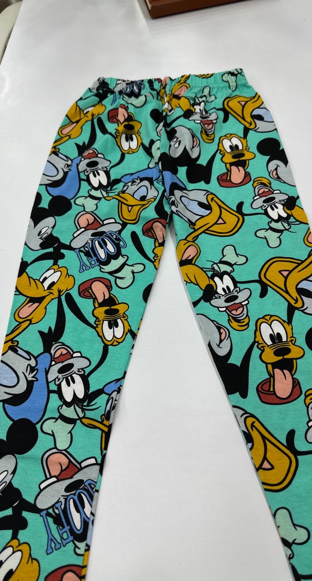Renkli pop kültür baskılı, bol kesim ve lastikli bel bandına sahip kız taytı, yumuşak sentetik kumaştan üretilmiştir.