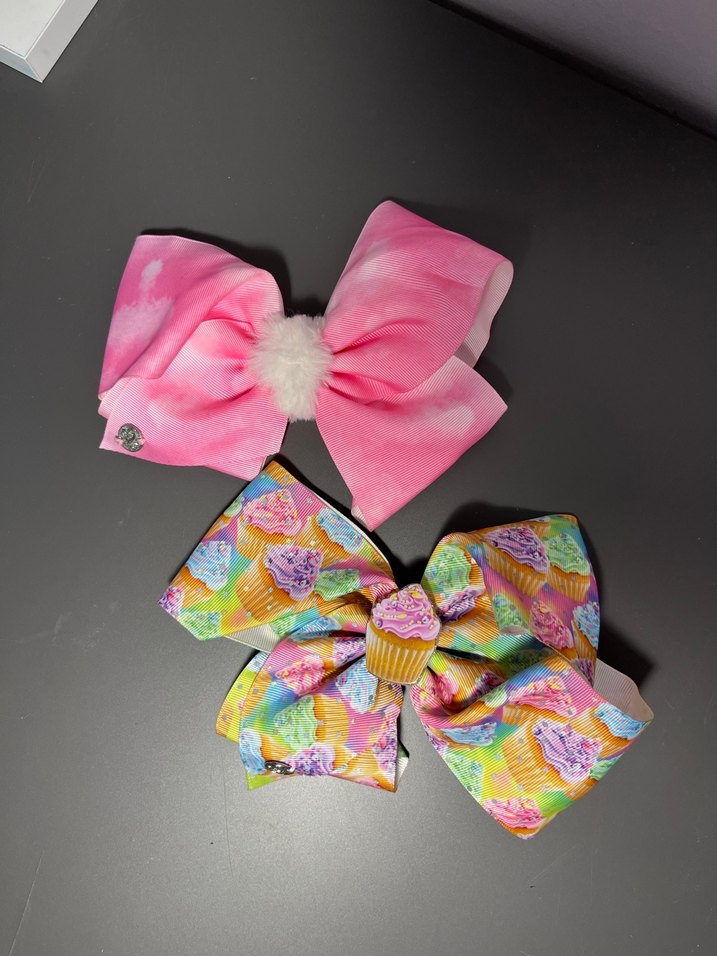 Bağlama desenli ve cupcake desenli renkli pop kültür çocuk fiyonk tokalar, trend belirleyiciler için uygun. Gercek jojo siwa tokalari cok az kullanilmis