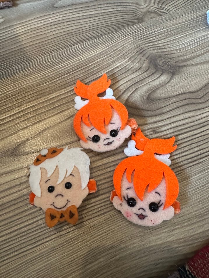 Velcro bağlantılı, renkli ve baskılı pop kültür tasarımlı çocuk saç tokaları. Bohem ve retro tarzda, turuncu ve bej renkler içerir. ✨