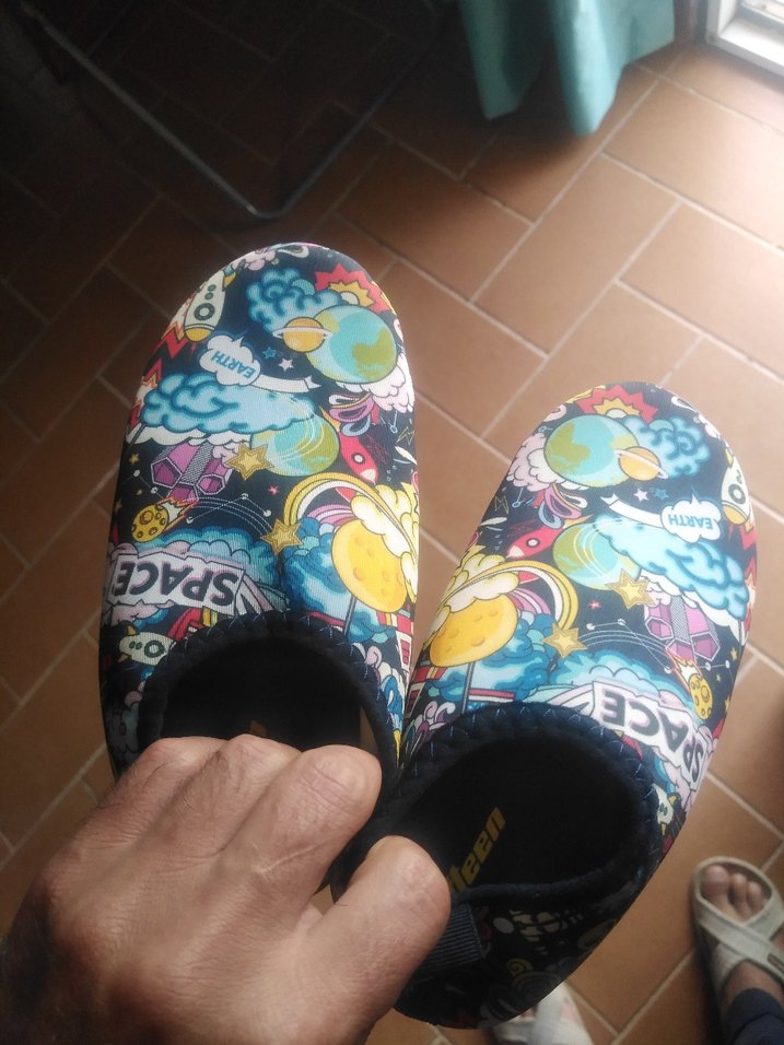 Renkli pop kültür desenli, kauçuk malzemeden yapılmış erkek su ayakkabısı. Cırt cırtlı bantlarıyla günlük sokak stiline uygundur. Çok az kullanılmıştır 30 numara