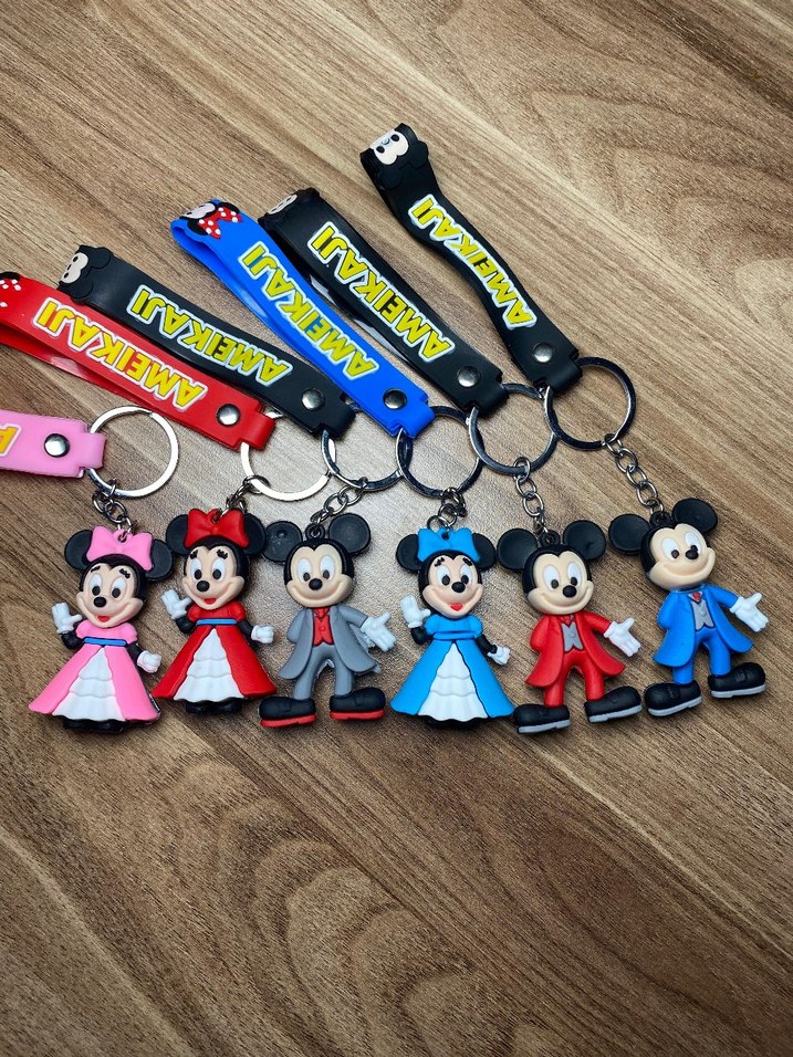 Pop kültür ve bohem tarzından esinlenen, püskül detaylı renkli Mickey ve Minnie figürlü anahtarlıklar .adet fiyat