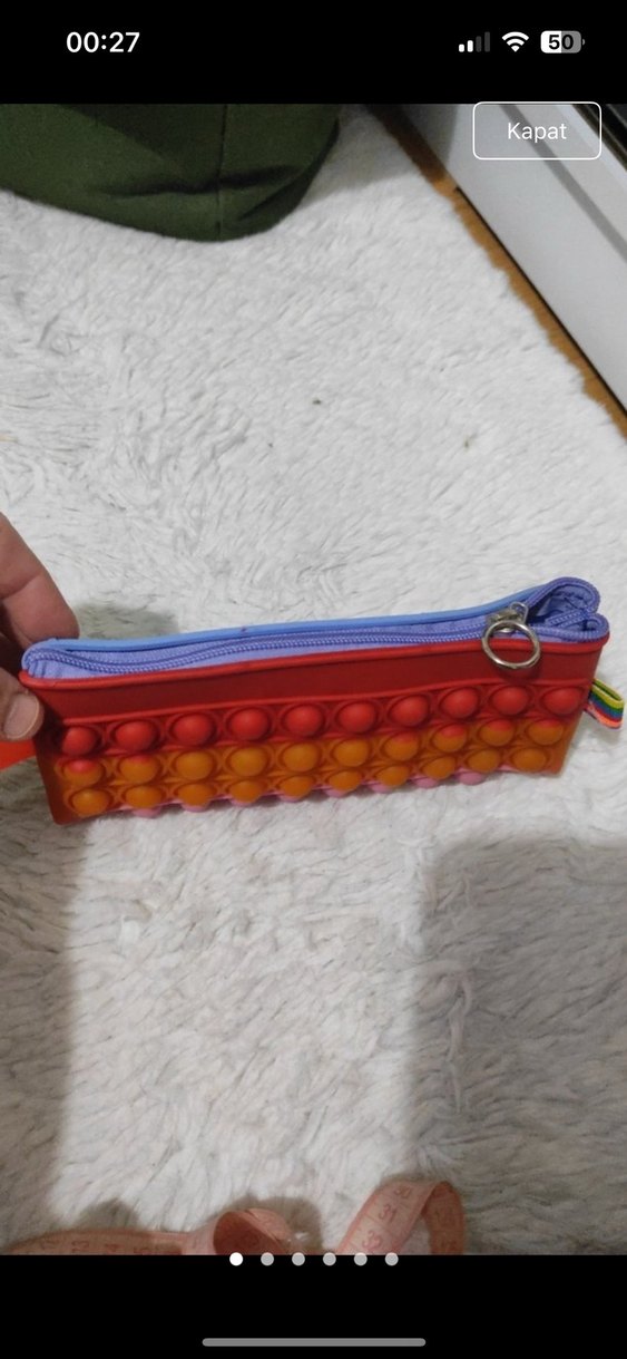 Renkli tie-dye popit desenli, fermuarlı çocuk cüzdanı kalemliği. Önde oyunlu kabarcık dokusu ve pop kültür tarzı bulunur. 20-11 kalemlik