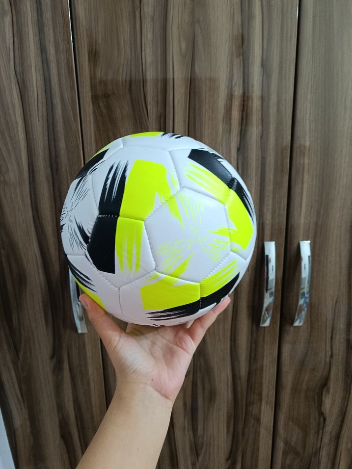 Sarı, siyah ve beyaz desenli renkli futbol topu, oyun ve antrenman için uygundur. ⚽ çok kaliteli güzel bir üründür 5 numara 420 gram uzun ömürlü bir top
