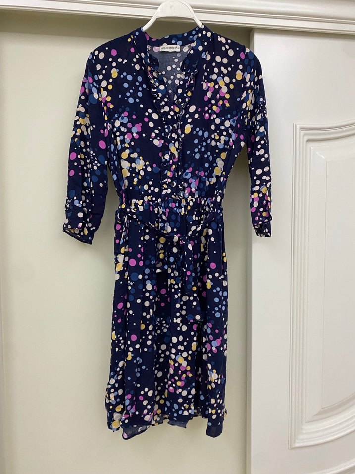 Çok renkli desenli, uzun kollu, midi uzunlukta normal kesim