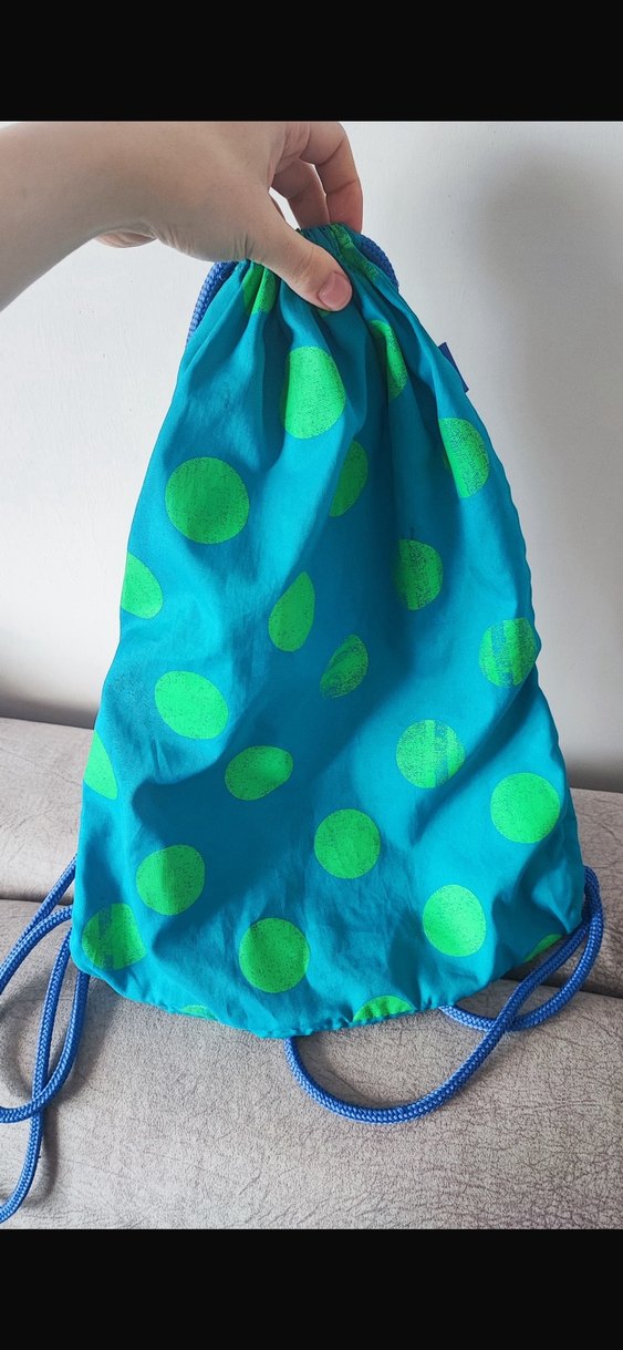 Sentetik kumaştan, renkli ve puantiyeli, drapeli tasarıma sahip kadın spor çantası. Günlük ve sokak stili için uygundur.