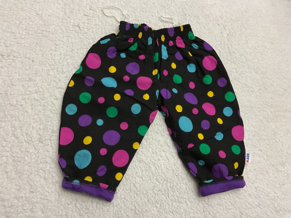 Yumuşak kumaştan, renkli puantiyeli bol kesim kız çocuk pantolonu. Elastik bel ve paça detayları rahatlık sağlar.