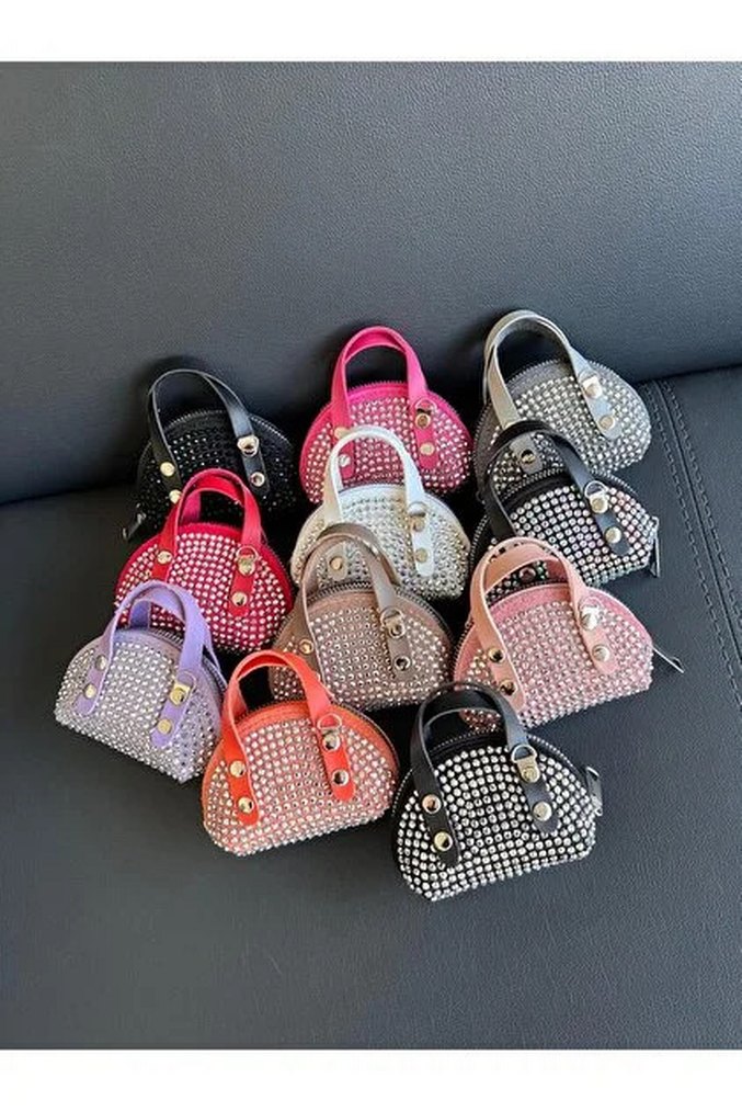Sentetik kumaştan, pul işlemeli ve puantiyeli desenli renkli kadın çapraz çantalar. Günlük kullanım için uygun, gösterişli ve rock punk tarzında.