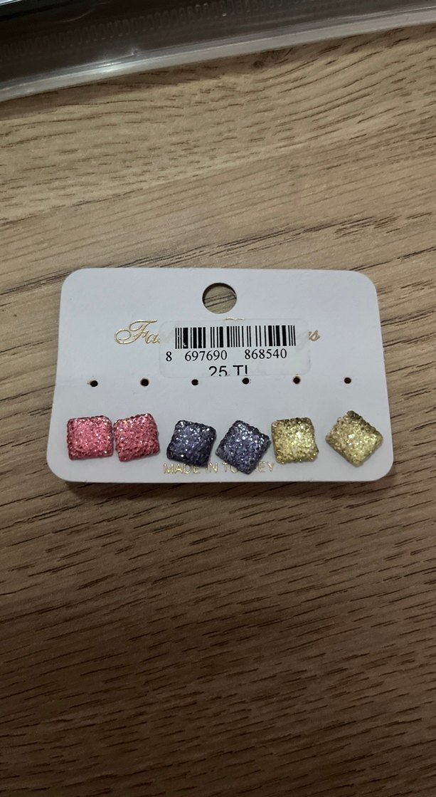 Renkli pullarla süslenmiş kısa kare küpelerden oluşan set, bohem romantik gece için uygun. ✨ Hiç kullanılmadı