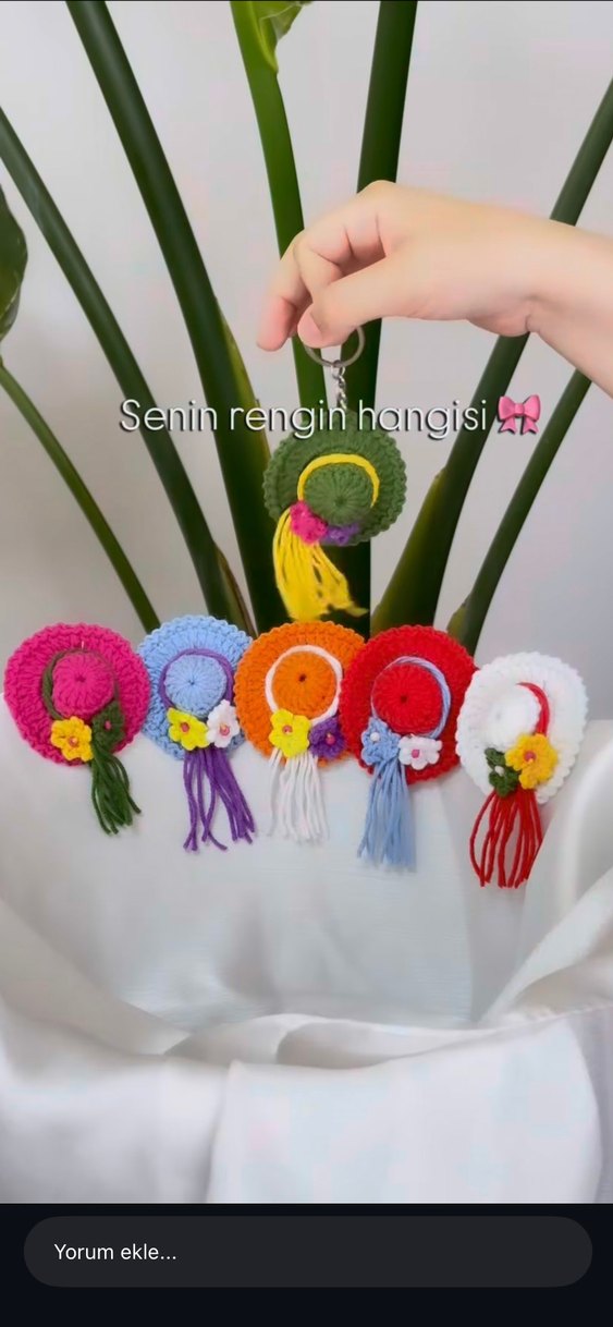 Renkli püsküllü, örgü şapka ve çiçek detaylı bohem anahtarlıklar. Canlı renklerde ve eğlenceli püsküllere sahip. 1 ADET FİYATIDIR