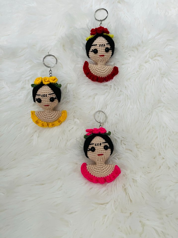 Renkli püsküllerle süslenmiş, el yapımı bebek yüzlü bohem kadın anahtarlıkları. Her biri retro tarz için canlı ve özgün tasarıma sahip.