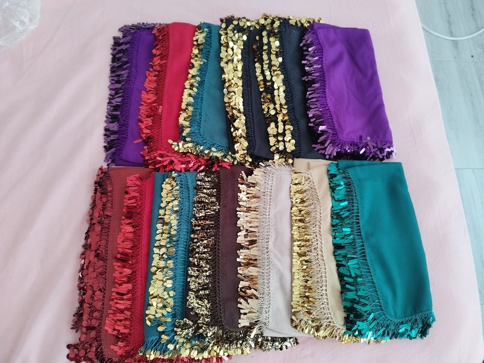 Püsküllü, renkli ve tekstil malzemeden yapılmış kadın şalları. Bohem tarzı ve canlı renkler sunar. tekli fiyat