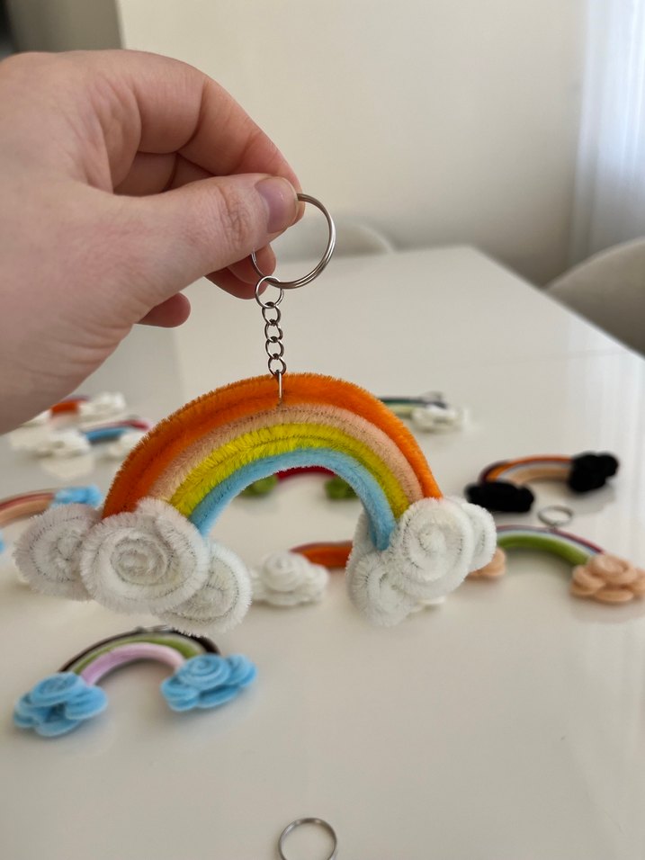 Şönil el yapımı anahtarlık. Yumuşak dokulu, püsküllü renkli gökkuşağı anahtarlık, bohem ve minimalist tarzlara uygun. Adet fiyatıdır. Birden fazla alımda ilan açtırınız
