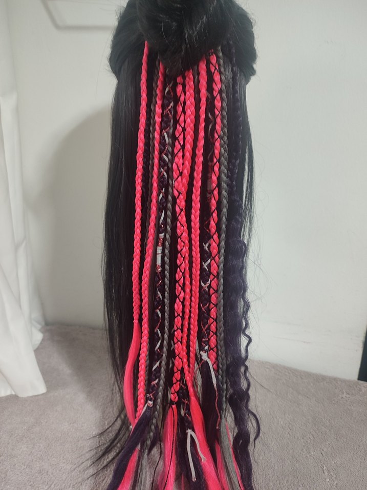 BT061 Kanca Set Renk: Neon pembe & Gri & Patlıcan Moru Toplam 16 örgü 5 ip örme 1 adet kanca toka Tak-çıkar örgülerdir. Her tokaya uyumludur. Direk saça uygulanabilir. 55/60 cm uzunluk Yıkanabilir Uzun ömürlü ®️Kaliteli kanekolon Sentetik saç örgüsü