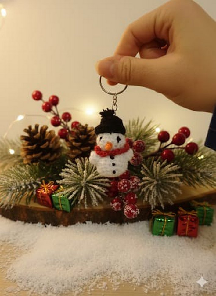 Renkli Püsküllü Kardan Adam Anahtarlık