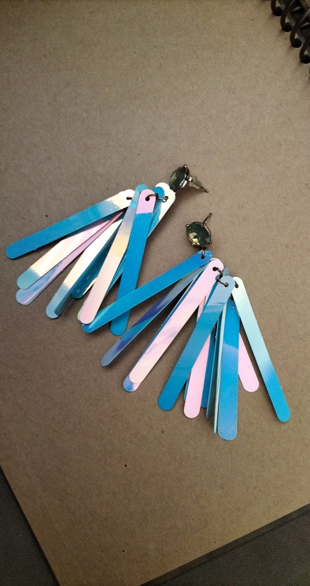 Uzun uzunlukta, renkli baskılı püsküllü kadın küpeleri, parti ve karşı kültür tarzları için uygundur. ✨ 1-2 kez kullanıldı. Dezenfekte edilmiştir.