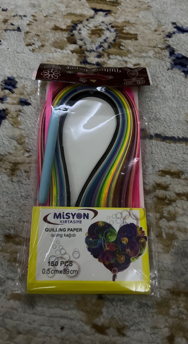 150 parçadan oluşan, 0.5cmx39cm boyutlarında renkli quilling kağıdı seti. İçinde quilling aracı bulunur. Yaratıcı okul etkinlikleri için uygundur.