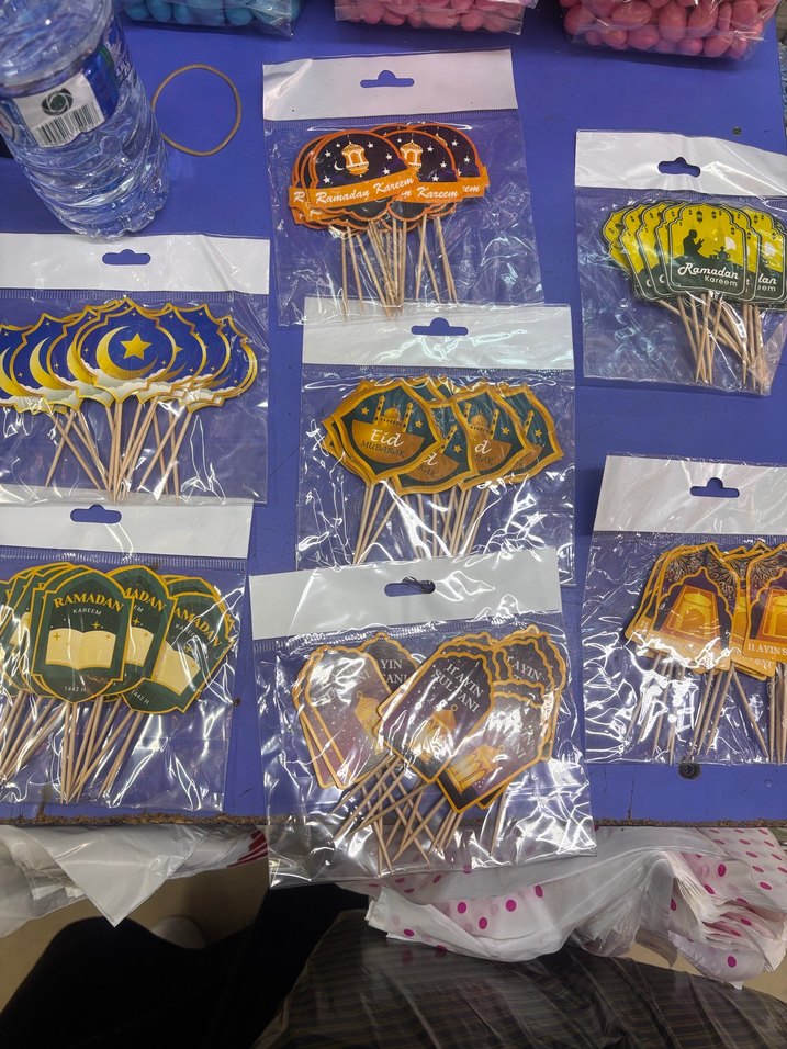 Bir paket fiyatıdır, içinde 14 adet var. Hilal, fener ve Ramazan temalı renkli parti kürdanları. Festivaller için uygun süslemeler.