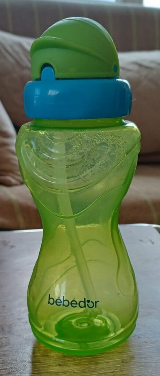 Mavi kapaklı, renkli yeşil suluk kolay içim için pipetli ve rahat tutuşlu tasarıma sahiptir.